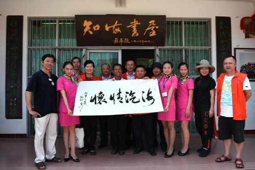 “知海書屋”創(chuàng)辦者孫衍吾還現(xiàn)場揮豪“海汽情懷”四個(gè)大字贈(zèng)予??诜止?。