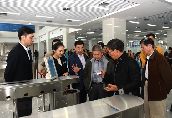 座談會(huì)開始之前,姜宏濤、劉海榮、王修奮等陪同老干部參觀新落成的??谄嚳傉荆隄麻L(zhǎng)親自當(dāng)起了“向?qū)?rdquo;,向老干部介紹??谄嚳傉粳F(xiàn)代化的自助售檢系統(tǒng)、智能化調(diào)度系統(tǒng)、信息發(fā)布系統(tǒng)、安防監(jiān)控系統(tǒng)以及先進(jìn)的人臉識(shí)別、車牌識(shí)別,車輛自動(dòng)檢測(cè)、自動(dòng)報(bào)班等功能。老干部們被眼前一座現(xiàn)代化、智能化、生態(tài)型道路客運(yùn)樞紐站所震撼,對(duì)公司近年來(lái)發(fā)展成果給予點(diǎn)贊。